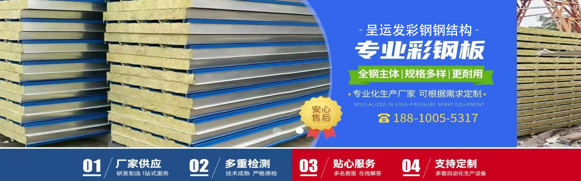 生產銷售各種型號規格的:新型聚氨酯夾芯彩鋼復合板,新型聚氨酯封邊防火棉夾芯彩鋼復合板,防火巖棉夾芯彩鋼復合板及其它芯材夾芯彩鋼復合板,鋁鎂錳合金板,鈦鋅板,鋼筋桁架樓承板,彩鋼壓型板,壓型鋼板,組合樓板,彩鋼仿古裝飾瓦,彩鋼壓花復合裝飾板,彩鋼防雨罩,彩鋼廣告扣板,弧形彩鋼瓦,彩鋼凈化潔凈板,冷庫板,圍擋板,住人集裝箱房,彩鋼活動房,集成房屋,C.Z型鋼,鋼結構等產品及配套附件。